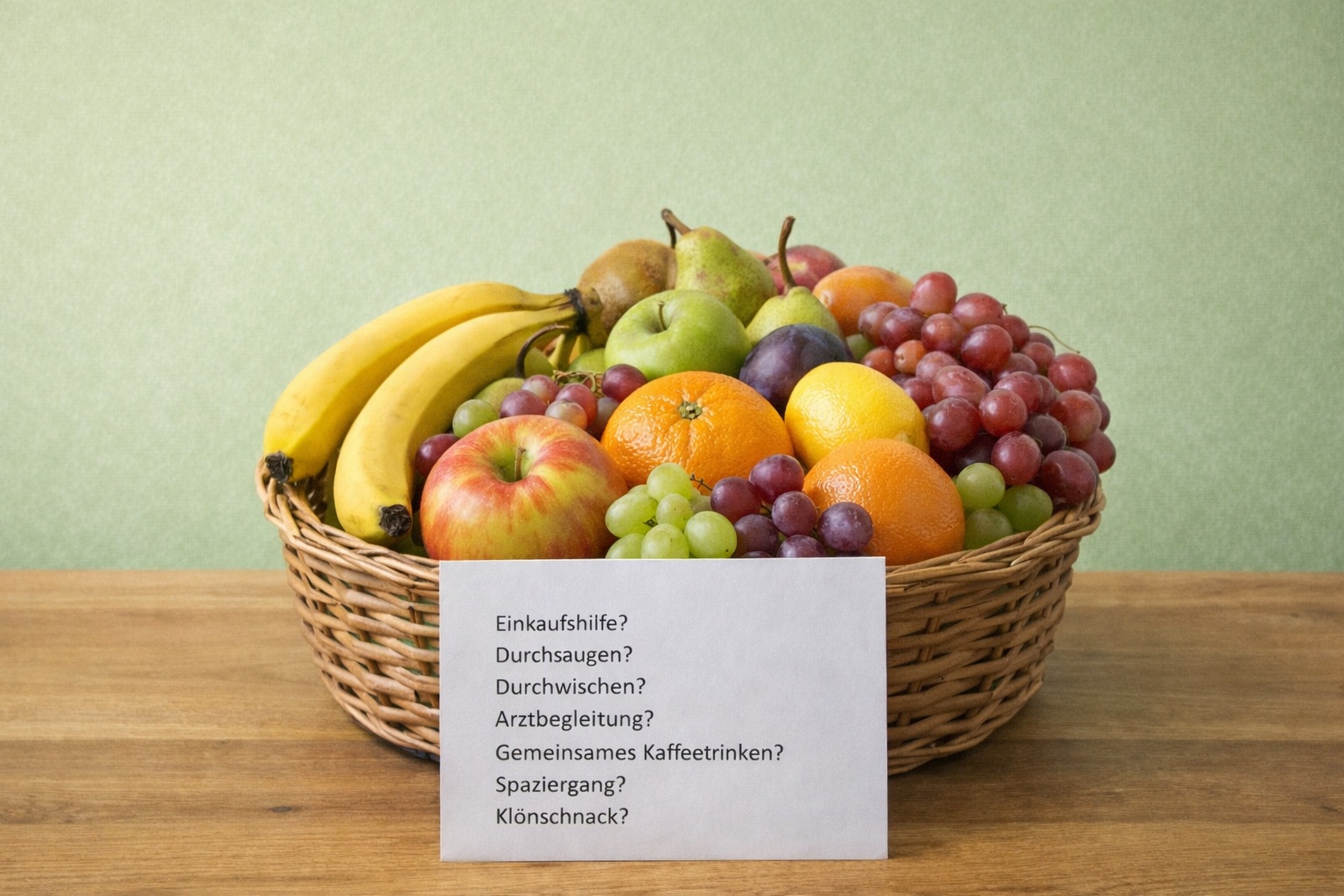 Unterstützung im Alltag, z.B. bei Einkäufen, Hausarbeit oder persönliche Begleitung bei Terminen.